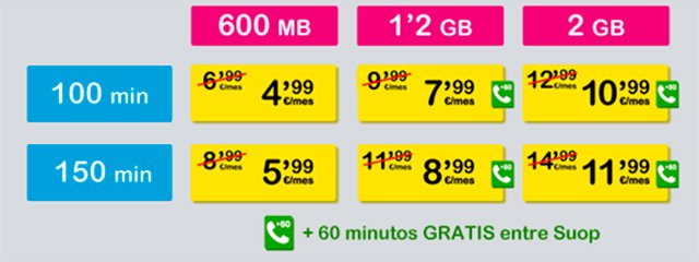 Aunque esta vez no hay ningún incremento de GB, Suop plantea opciones mucho más interesantes, sobre todo para los usuarios que no hacen un consumo elevado.