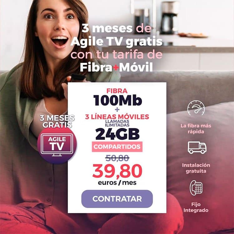Agile TV se puede contratar con cualquier tarifa de fibra y móvil de Oceans (incluidos sus planes compartidos). En la actualidad, todas estas opciones se pueden disfrutar durante tres meses con un precio menor al habitual debido a la promoción que mantiene vigente.
