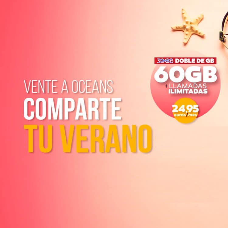 La cuota mensual de este plan es de 23 euros. En caso de superar el límite de voz, Ocean’s tarifica cada llamada a 18,1 céntimos de establecimiento y 8,5 céntimos por minuto.